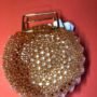 Sac rond en perle acrylique, côtés striés, manche métallique dorées avec une pochette amovible